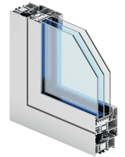 Trzykomorowy system okno-drzwiowy do projektowania okien i drzwi o wysokiej wydajności termicznej; system cechuje bardzo dobre parametry techniczne.